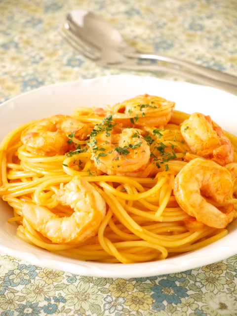 ・プリプリ♪海老のトマトクリームパスタ