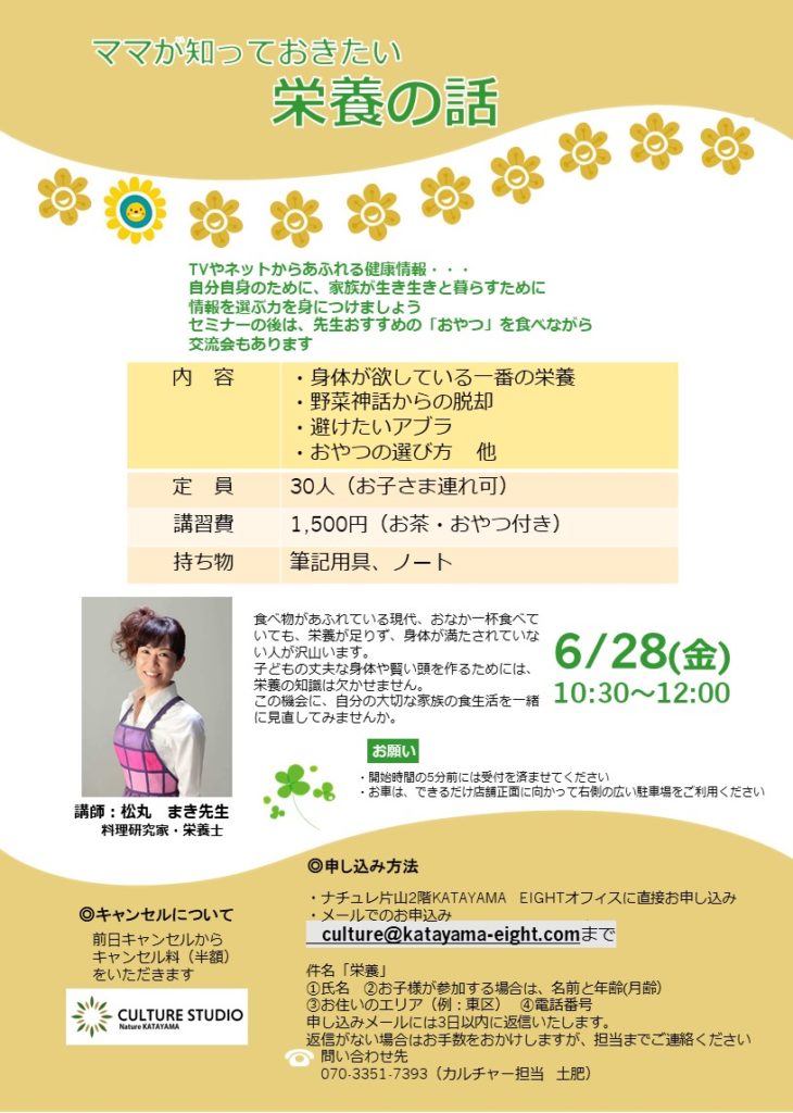 新潟市 ナチュレ片山 で 栄養セミナー 開催します 2019年5月13日 お知らせ 2019年6月28日(金)に新潟市東区にあるナチュレ片山さんで、「ママが知っておきたい栄養の話」と題してお話をさせて頂きます。詳細はこちら(ナチュレ片山カルチャースタジオFacebookにいきます) URL Copied!