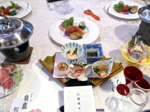 お土産が付いて、食後は温泉にも入れるという♪